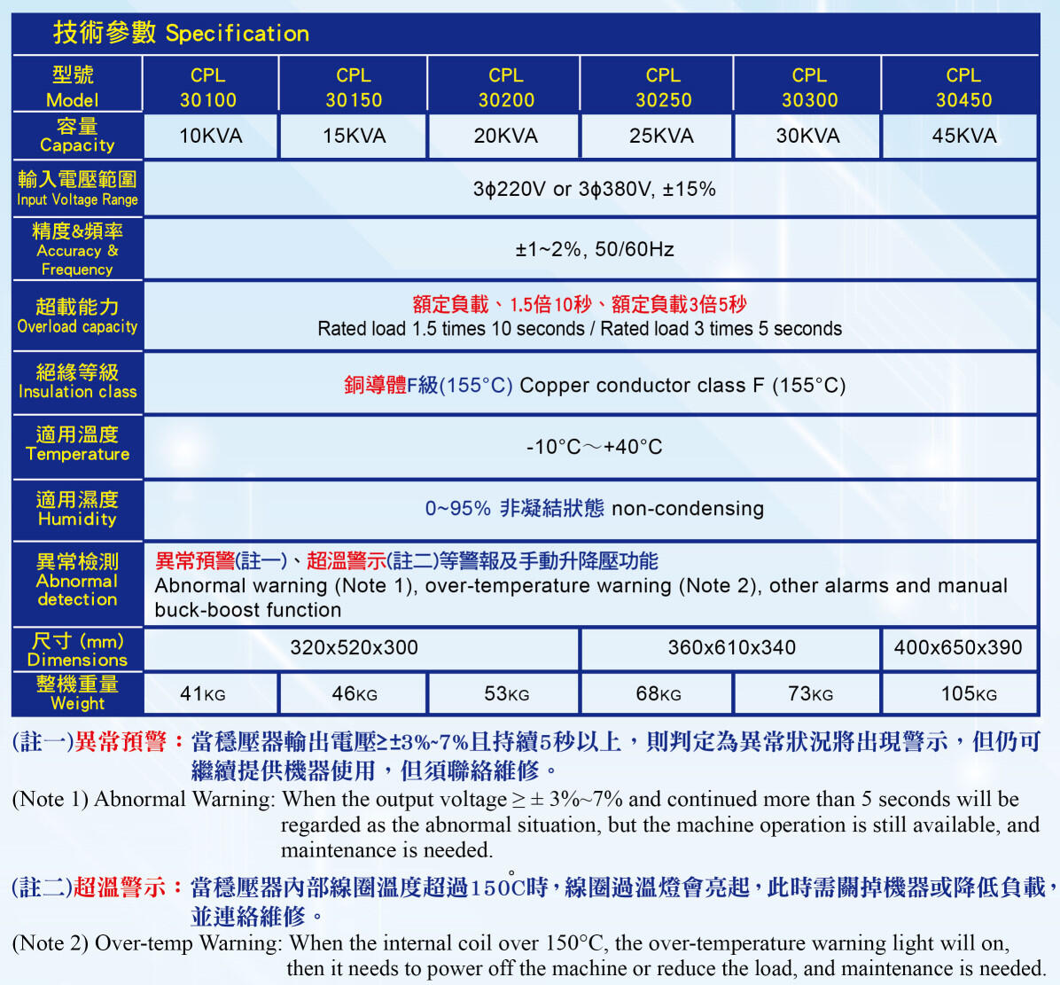 ● Abnormal Warning: When the output voltage ≥ ± 3%~7% and continued more than 5 seconds will be regarded as the abnormal situation, but the machine operation is still available, and maintenance is needed.